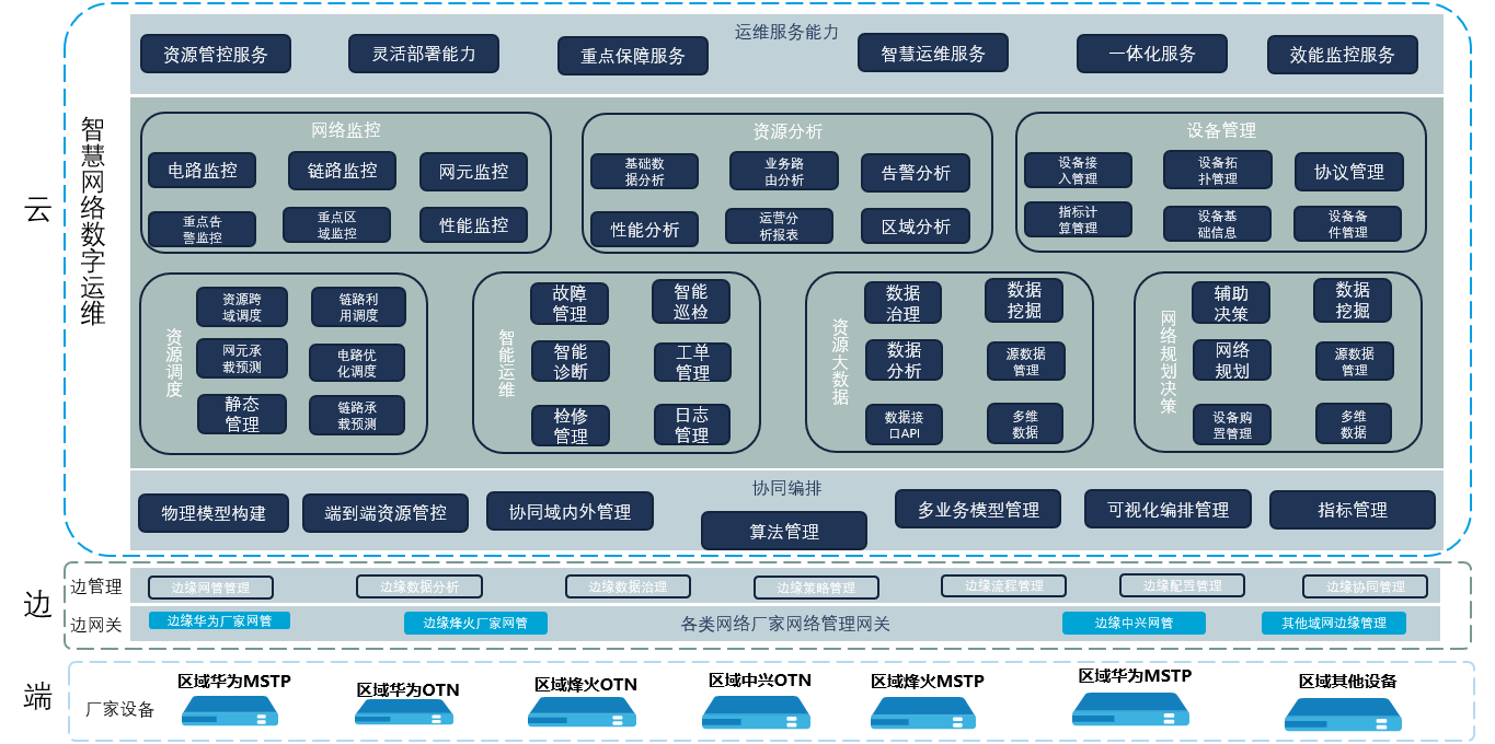 智慧綜合光網(wǎng)絡(luò)數(shù)字化運(yùn)維系統(tǒng)(簡稱:傳輸綜合網(wǎng)管)是實(shí)現(xiàn)跨域跨廠商業(yè)務(wù)端到端管理功能,打造簡約、快捷的應(yīng)用能力,為加快整體業(yè)務(wù)數(shù)字化運(yùn)維提供堅(jiān)固基石,傳輸綜合網(wǎng)管支持統(tǒng)一拓?fù)涔芾?、支持域?nèi)、域間拓?fù)洳榭?、綜合管理域內(nèi)拓?fù)涑尸F(xiàn)及網(wǎng)元告警管理,支持資源數(shù)據(jù)(網(wǎng)元、端口、鏈路等)搜索,并根據(jù)客戶安全級別要求能夠滿足系統(tǒng)本身業(yè)務(wù)安全、認(rèn)證和訪問控制安全管理,系統(tǒng)本身支持南/北向安全(AP),并提供WEB安全,可部署在高安全級別操作系統(tǒng)上,并能達(dá)到使用數(shù)據(jù)庫的安全,以及基礎(chǔ)安全防護(hù)能力,系統(tǒng)設(shè)計(jì)上滿足高可用、高可靠的需求。為建設(shè)智慧綜合網(wǎng)絡(luò)數(shù)字化運(yùn)維系統(tǒng)復(fù)雜網(wǎng)絡(luò)場景核心支撐能力、網(wǎng)絡(luò)運(yùn)維便捷可視化能力、業(yè)務(wù)運(yùn)維保障能力。