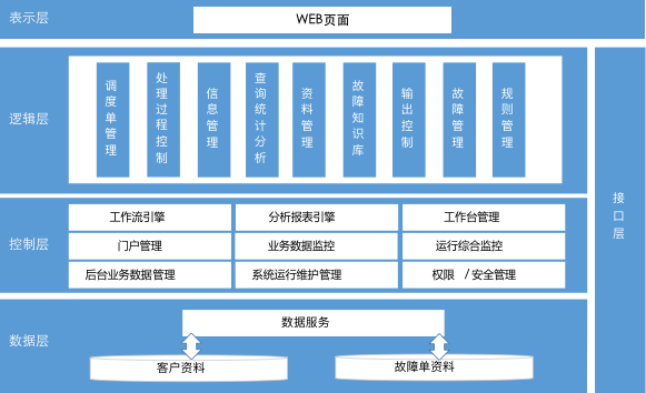 綜合調(diào)度系統(tǒng)是負(fù)責(zé)處理故障業(yè)務(wù)工單、中繼業(yè)務(wù)開(kāi)通工單的流轉(zhuǎn)系統(tǒng),,負(fù)責(zé)工單處理的信息化支撐和全過(guò)程控制管理。在故障業(yè)務(wù)工單方面,系統(tǒng)不僅能夠處理由各級(jí)網(wǎng)絡(luò)監(jiān)控部門(mén)和傳輸、數(shù)據(jù)、無(wú)線、公話等網(wǎng)管系統(tǒng)主動(dòng)發(fā)現(xiàn)的故障,同時(shí)還可以處理綜合客服系統(tǒng)接受到的外部客戶故障申告;在中繼業(yè)務(wù)開(kāi)通工單方面,實(shí)現(xiàn)了局內(nèi)電路申請(qǐng)、調(diào)度的電子化、集中化管理,建立了交換、傳輸、數(shù)據(jù)、光纖專業(yè)電路的申請(qǐng)、調(diào)度、施工、測(cè)試流程。