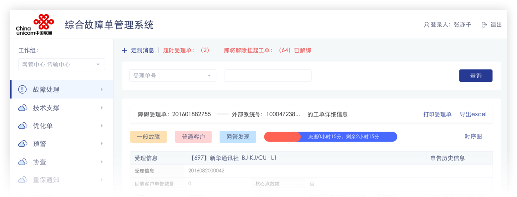 綜合調(diào)度系統(tǒng)是負(fù)責(zé)處理故障業(yè)務(wù)工單、中繼業(yè)務(wù)開通工單的流轉(zhuǎn)系統(tǒng),,負(fù)責(zé)工單處理的信息化支撐和全過程控制管理。在故障業(yè)務(wù)工單方面,系統(tǒng)不僅能夠處理由各級(jí)網(wǎng)絡(luò)監(jiān)控部門和傳輸、數(shù)據(jù)、無線、公話等網(wǎng)管系統(tǒng)主動(dòng)發(fā)現(xiàn)的故障,同時(shí)還可以處理綜合客服系統(tǒng)接受到的外部客戶故障申告;在中繼業(yè)務(wù)開通工單方面,實(shí)現(xiàn)了局內(nèi)電路申請(qǐng)、調(diào)度的電子化、集中化管理,建立了交換、傳輸、數(shù)據(jù)、光纖專業(yè)電路的申請(qǐng)、調(diào)度、施工、測(cè)試流程